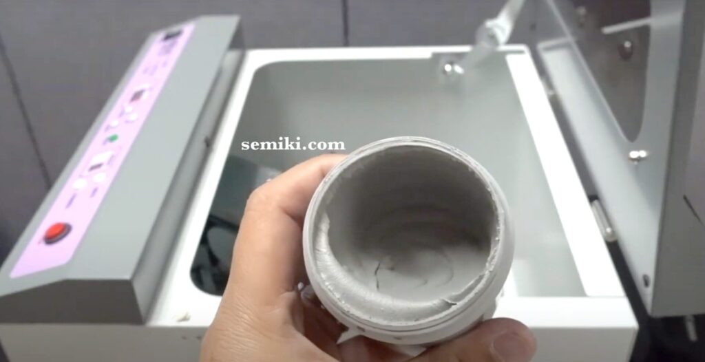 Lắp dụng cụ đo: Gắn bộ cánh khuấy phù hợp với loại kem hàn và buồng đo (thường có dung tích 100ml hoặc 300ml). Đặt buồng đo vào vị trí bên trong máy.