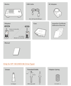 HIOS HP-100-R3-W khoảng lực đo 0,15-10N・m/ 15-1000N cm, là một thiết bị đo mô-men xoắn (torque meter) được sử dụng để kiểm tra, điều chỉnh và quản lý lực siết của các loại máy vặn vít, tua vít điện, cờ lê lực và các bộ phận quay khác.Model HP-100-R3-W có cổng RS232C cho phép kết nối và xuất dữ liệu đo vào máy tính.